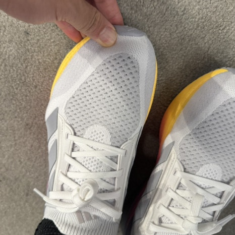 거기에 가장 큰 칭찬을 해주고 싶은 부분은 울트라 부스트에서 드디어 슈레이스 홀을 신발끈 구멍에 플라스틱을 버려서 천의 형태로 해서 이게 무게도 가볍도 발등에서 느껴진는 압박감과 불편감이 굉장히 해소 되었다. 거기에 뛸 때 이제는 쓸릴 일이 없어진것 같아서 요건 개인적으로 이게 불편했던 사람들에게 희소식이다.