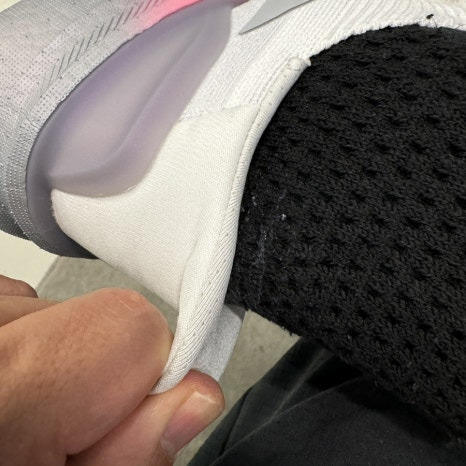 업퍼에 대한 첫 인상은 군더더기를 완전히 덜어냈다. 측면과 전면에 두툼한 부분들이 슬림하고 촘촘해져서 발가락 앞쪽을 꽉 잡아줘서 핏팅감이 굉장히 잘 형성된다. 발가락 주변부로는 밀도가 좀 높은 업퍼가 사용되었고, 가운데 발등 쪽은 메쉬로 그리고 상대적으로 무게를 덜어내고 부드럽게 만들어서 발이 밀릴때 받쳐줄수 있는 정도의 텐션으로 업퍼가 구성이 되어있다는 느낌이다.